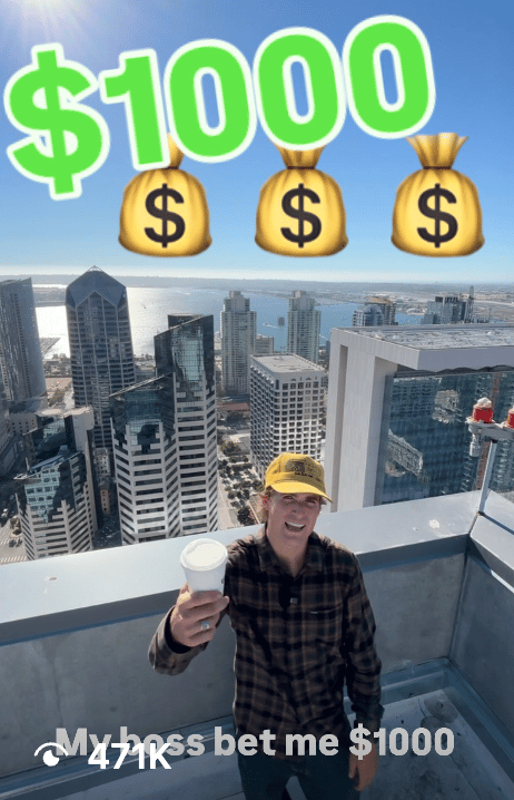 “My boss bet me $1,000 I couldn’t grow this account to 20k by the end of the month…so this is Day X of drinking coffee in a new location everyday until I hit that goal.”